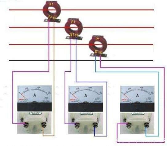 注:電源的進線端省畫的斷路器、萬能轉(zhuǎn)換開關(guān)?;ジ衅鞯淖兣浔戎狄鶕?jù)用電的容量來選擇,連接儀表的導(dǎo)線用1.5mm平方的單芯BV線就可以了。