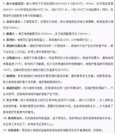 12.安裝費(fèi)用低:柔性防火電纜由于制作工藝先進(jìn),安裝簡單,在同等條件下其綜合費(fèi)用比礦物絕緣電纜的費(fèi)用明顯降低。