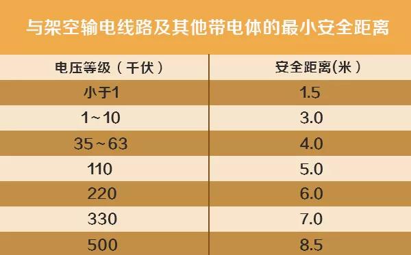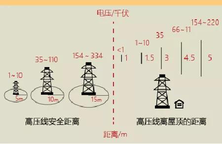 不同電壓等級的高壓帶電線路所必須保持的安全距離,當(dāng)物體進(jìn)入這些安全距離時(shí),就會(huì)引起放電。根據(jù)《電力設(shè)施保護(hù)條例實(shí)施細(xì)則》對安全距離的規(guī)定,1千伏以下高壓線的安全距離為4米;1-10千伏高壓線的安全距離為5米;35-110千伏高壓線的安全距離為10米;154-220千伏高壓線的安全距離為15米。