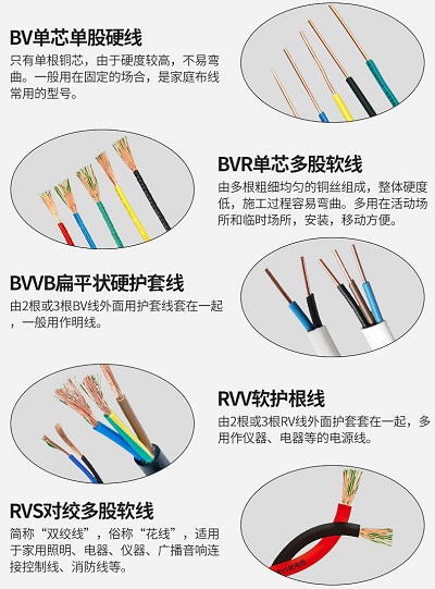 (1) 通用橡皮、塑料絕緣電線:歸屬布電線系列,包括戶外架空絕緣電線、用戶引入線、戶內(nèi)配線、電器電源連接線和農(nóng)用低壓地埋線等。廣泛適用于交流額定電壓450/750v(U0/U)及以下動力、照明、電器裝置、儀器儀表及電信設(shè)備之間的連接。